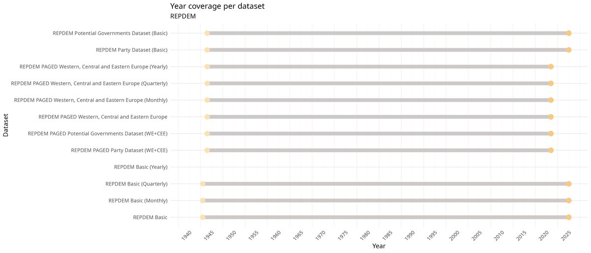 This comparative dataset on potential coalitions builds on previous datasets at REPDEM, and has been updated to include 28 European countries from 1945 (or their democratic transitions) up to June 1st, 2023.