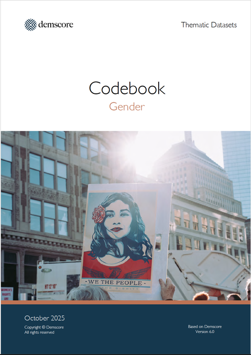 This dataset includes one observation per country and year. Variables relating to the topic Gender are merged to country and year identifiers from the Demscore Country-Year Output Unit. Please note that data for some variables in this dataset may have been collected at a different level of analysis.