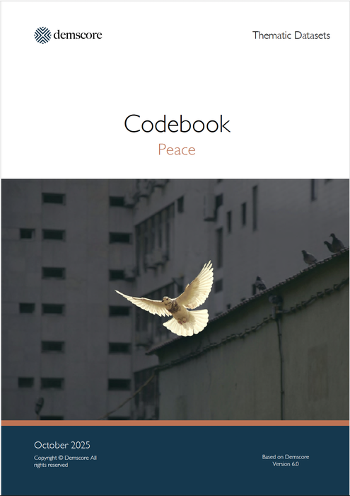 This dataset includes one observation per country and year. Variables relating to the topic of Peace are merged to country and year identifiers from the Demscore Country-Year Output Unit. Please note that data for some variables in this dataset may have been collected at a different level of analysis.